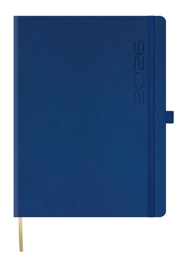 Kalendarz w twardej oprawie Taggia z delikatną strukturą skóry. Dodatki: tabelę świąt międzynarodowych, dostęp do panelu informacyjnego za pomocą kodu QR, oświadczenie o wypadku drogowym, 27 str.notatnik wszyty na końcu.