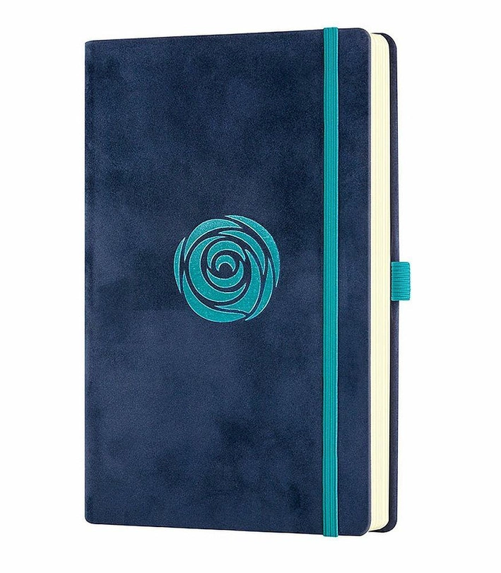 Aksamitna oprawa z motywami graficznymi wytłoczonymi barwną folią (tu: błękitna róża na granatowej oprawie); numerowane strony, indeks wątków, kieszonka na dokumenty. Polecamy z dodatkami: • ołówek Castelli stanowi doskonale uzupełnienia, ale taż nadaje niebanalny, klasyczny sznyt • eleganckie, czarne pudełko Castelli, ze złotą wyściółką, stanowi doskonałą oprawę prezentu