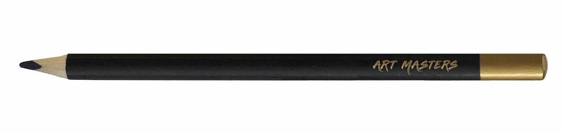Gruby, trójkątny, drewniany ołówek z logo Art Masters.