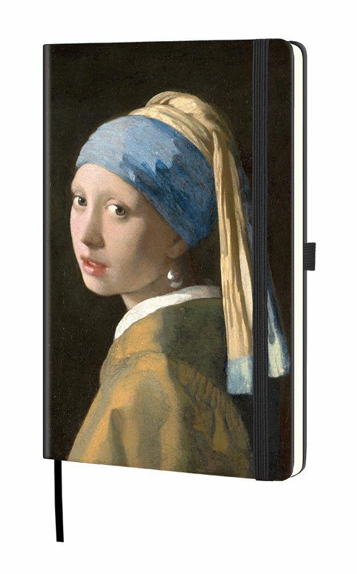 Zestaw prezentowy Art Masters stanowią: notes+katarynka+gruby trójkatny ołówek. Notes w linie z granatowymi wyklejkami i kieszonką na dokumenty. Na oprawie notesu i katarynki prezentujemy obraz Jana Vermeera, Dziewczyna z perłą. Całość zapakowana w pudełko ze sztywnego, czarnego kartonu, wypełnionego gąbką. Wybierz melodyjką dla katarynki. "